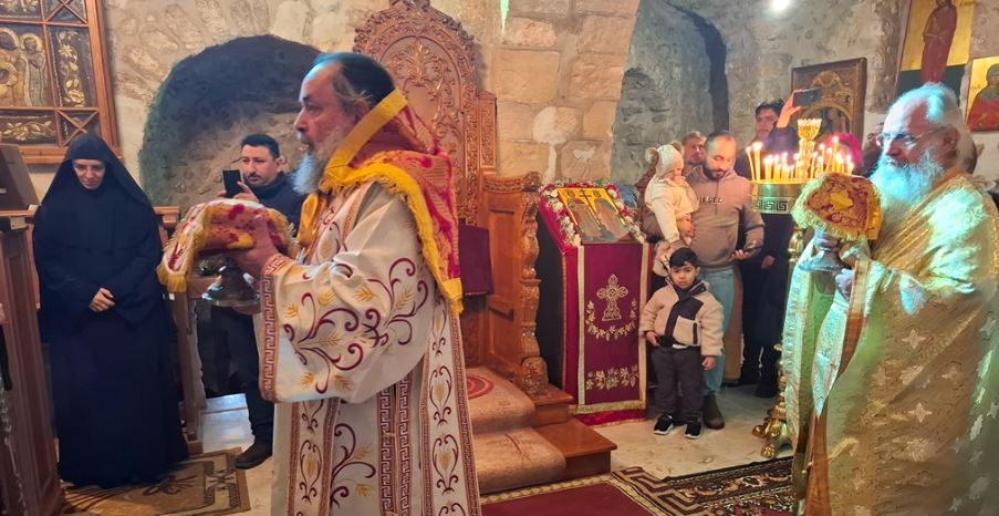 In remembrance of this miracle, Vespers was celebrated on the eve, together with the First Stasis of the Salutations, and the Divine Liturgy on the following morning at the Holy Monastery of the Saints Theodore in the Old City of Jerusalem. The services were presided over by His Eminence Metropolitan Hesychios of Capitolias, with the Holy Sepulchre Archimandrites Philoumenos, Stephanos, and Amphilochios, Priest Nektarios, and Archdeacon Mark. The chanting was delivered by Hierodeacon Prodromos and the nuns Maria and Sebastiani. Also participating were members of the sisterhood, Jerusalemite faithful, with the honourable presence of members of the Greek Consulate General, and a few pilgrims, owing to the adverse circumstances of the war which has just begun.