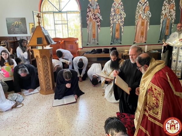 This feast was celebrated with Vespers on Sunday afternoon and the reading of the kneeling service at the Pentecost chapel inside the cemetery of the Holy Zion by His Eminence Archbishop Nectarios of Anthedona, with the co-celebration of Hagiotaphite Hieromonks and the Priests of Saint James Cathedral.