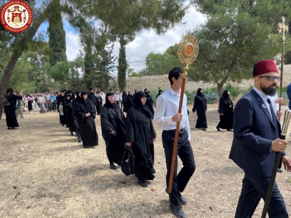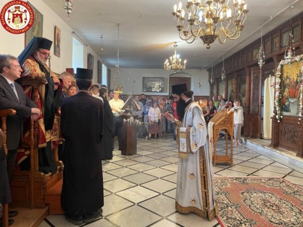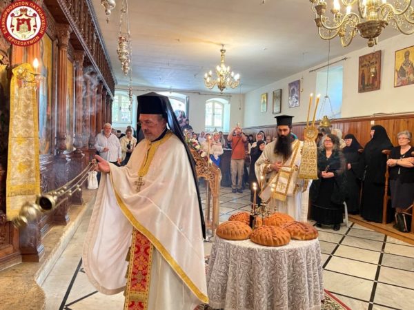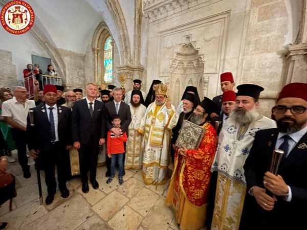 On Monday morning, the day of the feast of the Holy Spirit, the Divine Liturgy was celebrated at the Church of the Holy Trinity in the Patriarchate’s Monastery on Zion hill, by His Eminence Archbishop Nectarios of Anthedona with the co-celebration of Archimandrites Klaudios and Ieronymos, Priest Nectarios and Hierodeacon Dositheos. The chanting was delivered by Hierodeacon Simeon and the Patriarchal School Students, as the service was attended by many faithful Christians and the Consul General of Greece in Jerusalem Mr Evangelos Vlioras.