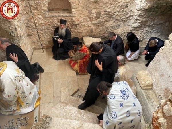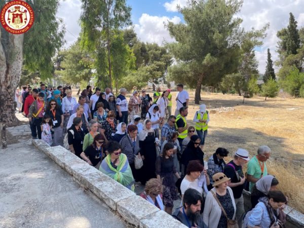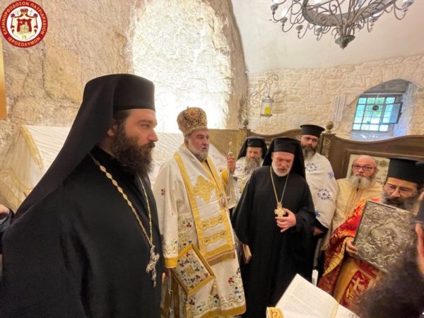 The Divine Liturgy was followed by a procession to David’s Tomb and the Upper Room where the prayers of the kneeling service were read at the chapel of the Holy Zion in the catacomb on the east side of the Church, at the Upper Room, and supplications were offered at David’s Tomb, and in front of the cemetery gate for the repose of the souls of the departed.