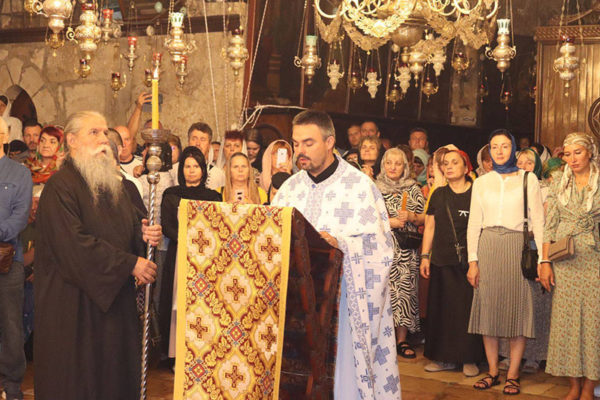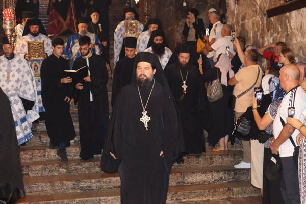 On Saturday, September 8/22, 2024 at the Theotokos’ Tomb in Gethsemane, according to the Status Quo, a Divine Liturgy was officiated by His Eminence Archbishop Aristovoulos of Madaba, with the co-celebration of the Archimandrites, the Exarch of the Holy Sepulchre in Athens, Raphael, Makarios, Dionysios, Ieronymos and Christodoulos, the Priests, Nectarios, Ioannis, Farah, Archdeacon Mark and Hierodeacon Dositheos. Mr Eustathios Matsoukas, the Patriarchal School of Zion students and the choir of Saint James Cathedral delivered the chanting.