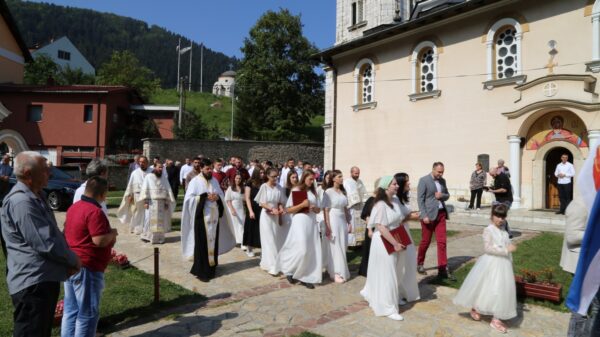 In the year of the Lord’s mercy, in 2020, His Eminence Metropolitan of Dabar-Bosnia Hrisostom came to Cajnice on this great feast-day for the first time to celebrate the Holy Hierarchal Liturgy. Archpriests staurophores Momir Vasiljevic and Andrej Hughes from the USA (Patriarchate of Antioch), archpriest Nikola Kovac, archpriest Ljubomir Prijovic, priests Damjan Radovic and Milos Janjic, as well as deacons Budimir Gardovic and Vjekoslav Jovanovic concelebrated.