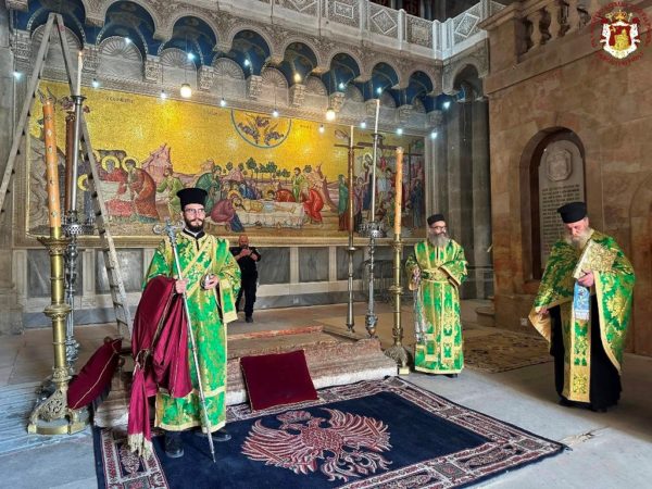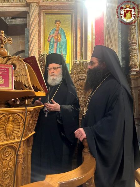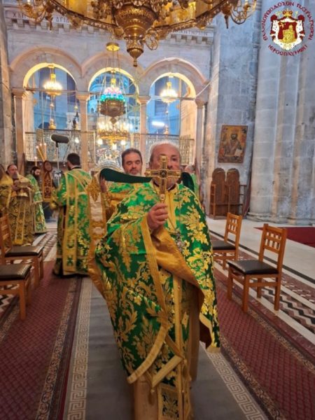 This feast was celebrated by the Patriarchate as a “Parrhesia”, in accordance with the liturgical order and Status Quo provisions at the Church of the Holy Sepulchre. It was observed from the previous evening with Vespers, and in the morning with the Divine Liturgy in the Katholikon of the All-Holy Church of the Resurrection.