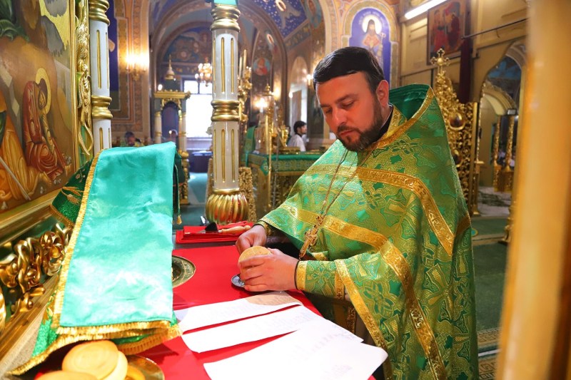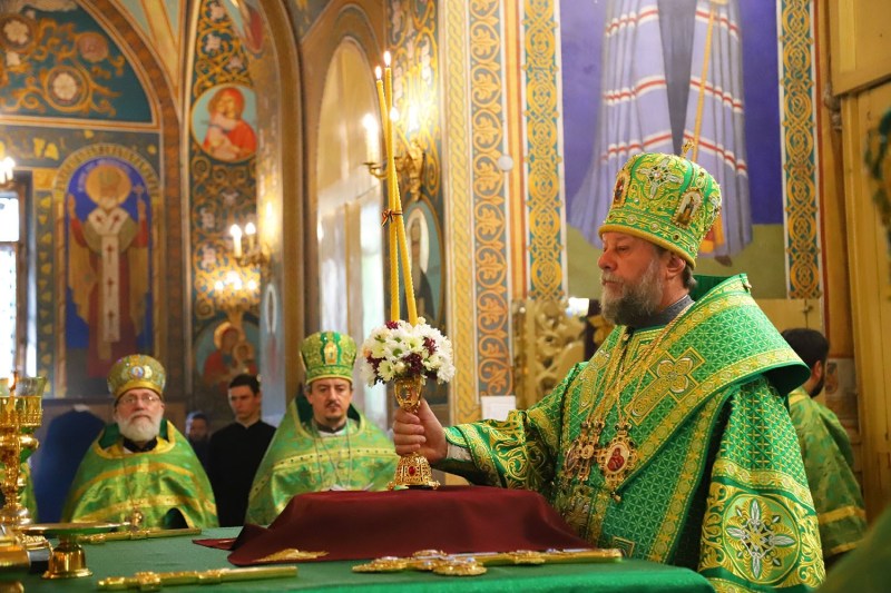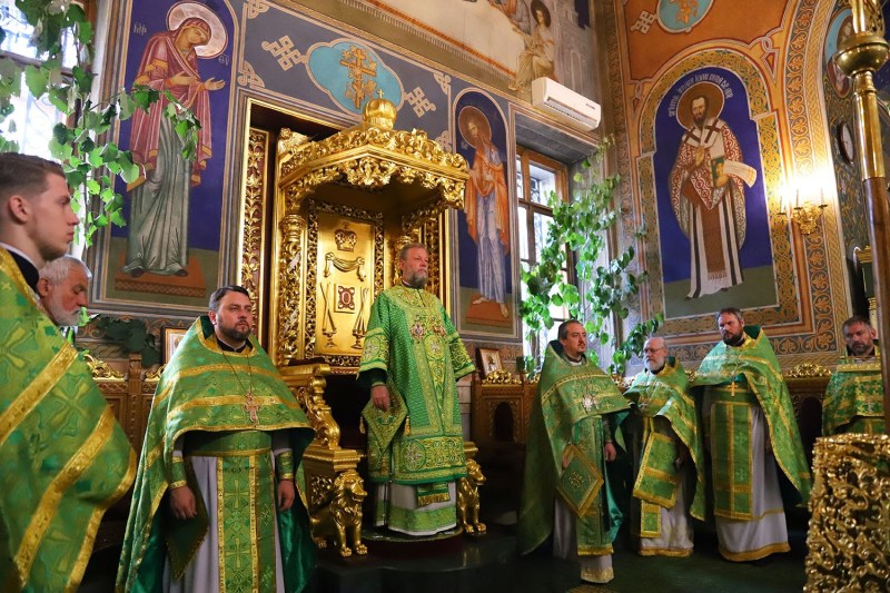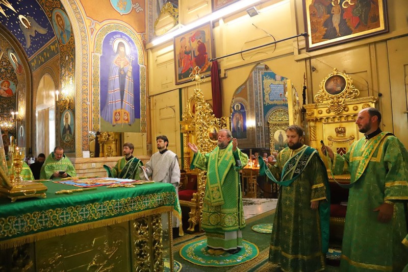 According to the tradition of the day, the Divine Liturgy was followed by a special Vespers service during which kneeling prayers were uttered. It should be mentioned that according to Orthodox Tradition, Christians do not kneel for prayers between the feasts of the Holy Pascha and the Pentecost, for the joy of presence of Lord Jesus Christ among the Apostles and further, all Christians. The first kneeling prayers are uttered during the Pentecost Vespers, underlining Christian humility and repentance.