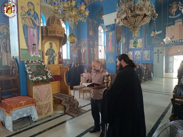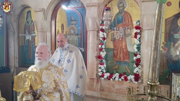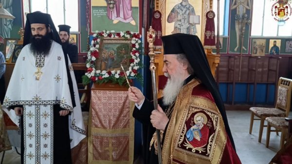 In the aforementioned Holy Monastery, H.H.B. our Father and Patriarch of Jerusalem Theophilos celebrated the Divine Liturgy with the co-celebration of their Eminences, Metropolitan Isychios of Capitolias and Archbishop Aristarchos of Constantina, Holy Sepulchre Fathers, the first of whom was the Typikon keeper of the Church of Saints Constantine and Helen Archimandrite Alexios, the Archimandrites Silouanos and Kyriakos and Fr Issa Mousleh, the Archdeacon Mark and Hierodeacon Dositheos. Hierodeacon Simeon was the Greek chanter with the assistance of Mr Georgios Varaklas and the choir of the Orthodox congregation chanted in Arabic.