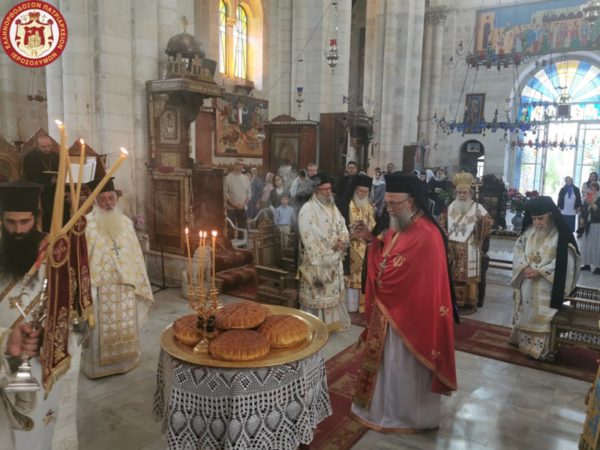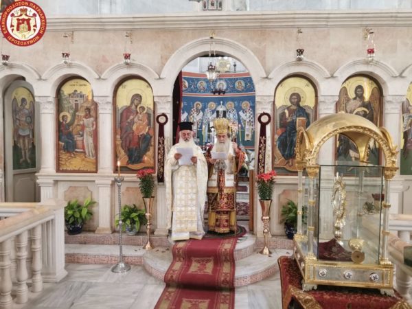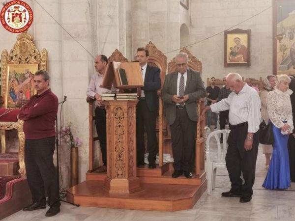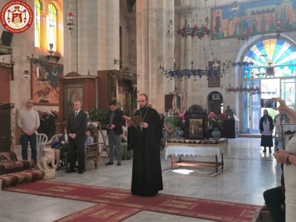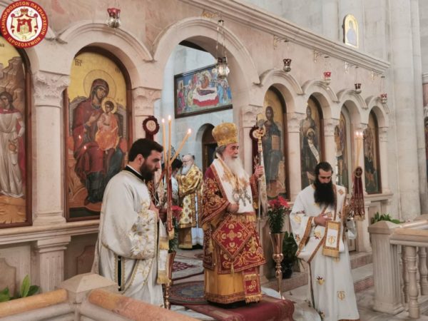 In this Church, the Divine Liturgy for the feast was officiated by His Beatitude our Father and Patriarch of Jerusalem Theophilos with co-celebrants their Eminences, Metropolitan Kyriakos of Nazareth, and the Archbishops, Aristarchos of Constantina, Philoumenos of Pela, Hagiotaphite Hieromonks, among whom the Elder Kamarasis Archimandrite Nectarios, and Archimandrite Ieronymos. The chanting was delivered by Archimandrite Leontios in Greek and the Community Choir in Arabic as the service was attended by many local faithful and pilgrims from various Orthodox Christian Churches, and faithful from the occupied territories of Samaria, Beit Jala, Beit Sahour and Bethlehem.