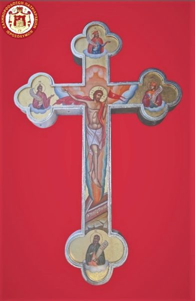 At noon the Hegoumen and owner and renovator of the Church, Archimandrite Ioustinos hosted a meal and offered His Beatitude a beautiful Cross, similar to the one placed on top of the Sacred Edicule after its renovation in 2017, so that He may use it at the processions according to the Typikon of the Church of Jerusalem.