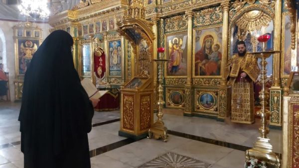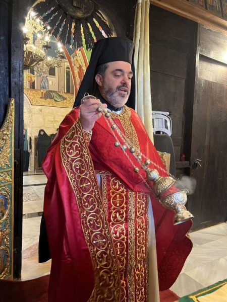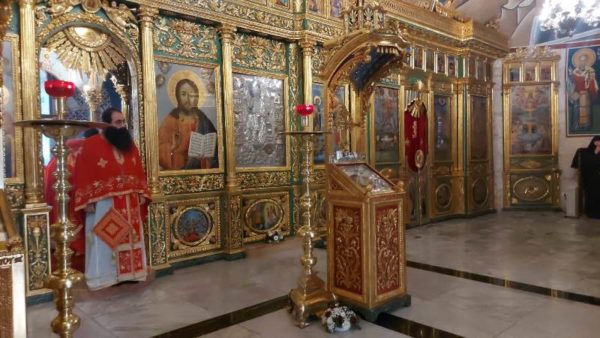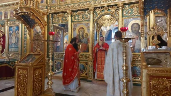 At the Holy Monastery of Saint John the Baptist in Jerusalem, the one near the Church of the Holy Sepulchre in the Christian quarter. The Divine Liturgy there was led by Archimandrite Amphilochios with the co-celebration of Archimandrite Christodoulos, Fr Stephen and Hierodeacon Simeon. The chanting was delivered by Nuns of the Patriarchate and Hierodeacon Dositheos, as the service was attended by monks, nuns and members of the Greek community of Jerusalem.