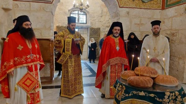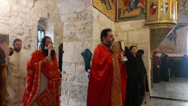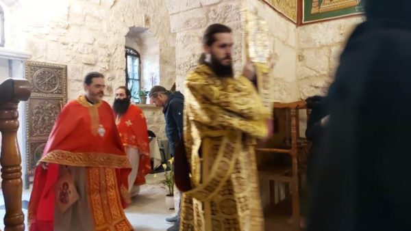 The Divine Liturgy there was celebrated by Archimandrite Chrysostom of the Holy Metropolis of Megara of the Church of Greece and the Priest Anastasios of the Church of the Holy Sepulchre, with the joint prayer and chanting by the Spiritual Father of the Monastery of Saint Savvas Archimandrite Eudokimos and Monk Theoktistos. The service was attended by some monastics and believers from Jericho.