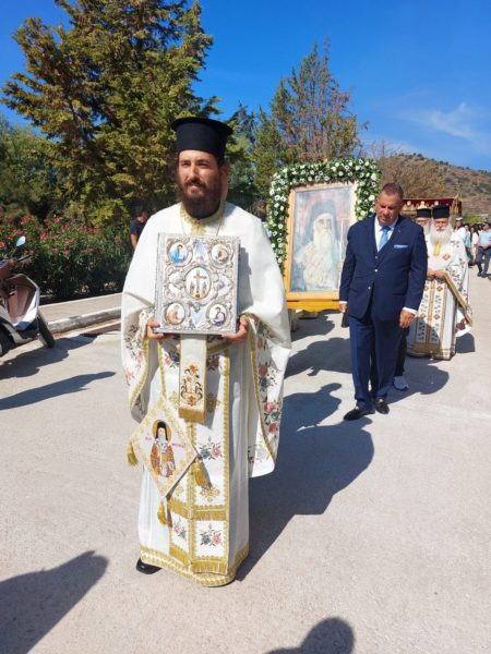 Afterwards, the festive Doxology was performed and followed by the procession of the Holy Icon and the Holy Skull of the Saint around the large Church, while a Trisagion Memorial Service was performed at the grave of the great builder of the Church, Elder Former Metropolitan Ierotheos of Hydra.