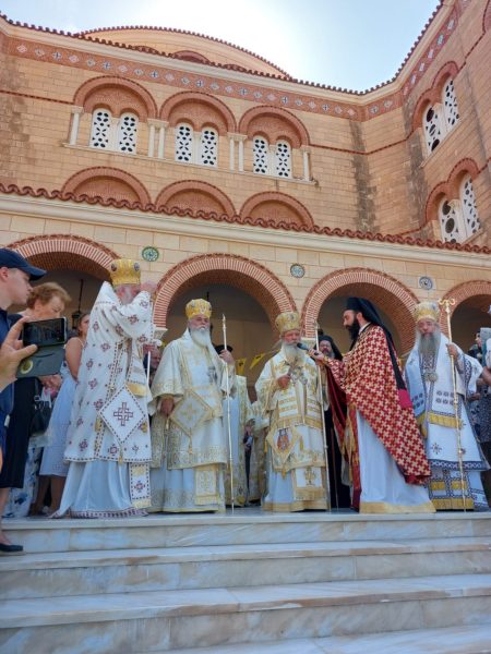 The Feast Day Divine Liturgy was presided over by His Eminence Metropolitan Ieronymos of Kalavryta and Aigialeia, and was joined in concelebration by Their Graces, Bishop Chrysostomos of Bukoba and Western Tanzania, Bishop Epiphanios of Talantio, and the local Shepherd, His Eminence Metropolitan Ephraim of Hydra, Spetses and Aegina.