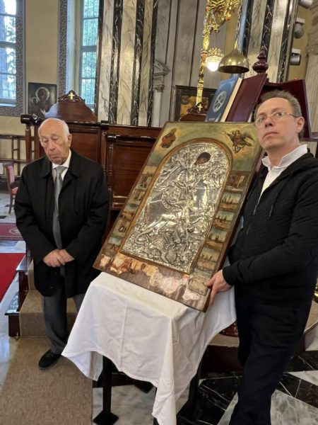 After the end of the Divine Liturgy, the procession of the Holy Icon of Saint George took place around the Holy Metropolitan Church and a feast day reception followed.
