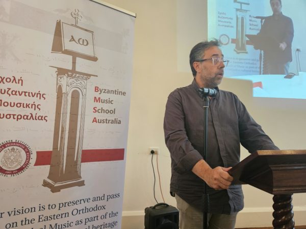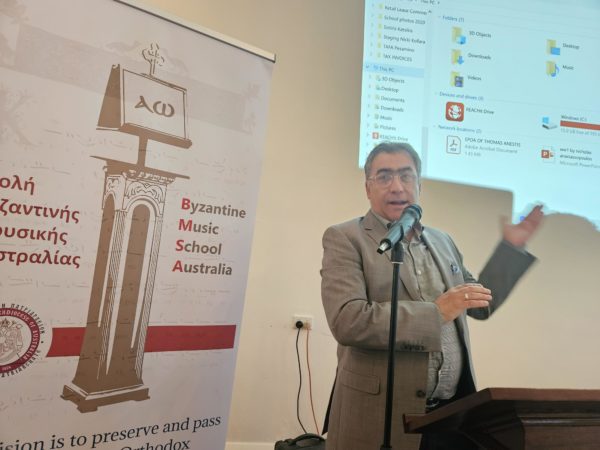 A total of 6 presentations were made during the Conference. The Director of the School in Sydney, Mr. Basilios Psilacos, and also the teacher of the School in Sydney, Mr. Dimitrios Koumbaroulis, Mr. Alexandros Kallionatis who teaches in Canberra and Mr. Andreas Ziogas, a teacher in Queensland, all spoke appropriately about their experience as teachers of Byzantine Music. Finally, the directors of the Schools of Adelaide and Melbourne Mr. Nikos Biri and Mr. Stylianos Andreou respectively made their own presentations.