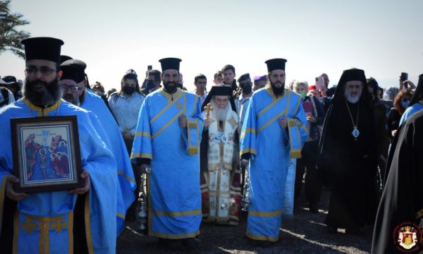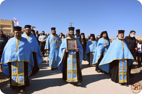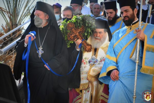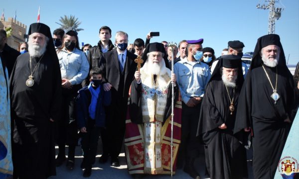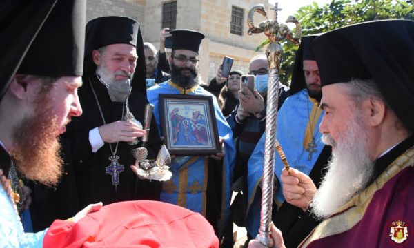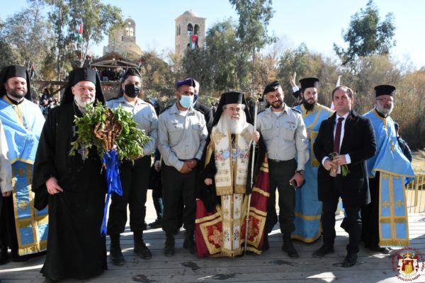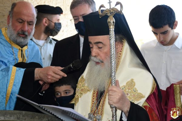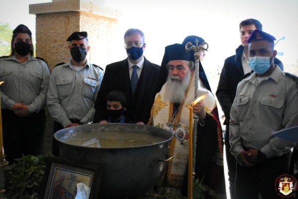 After this, His Beatitude departed for the River Jordan, through the Monastery of Prophet Elisha in Jericho and the Prefecture of Jericho and arrived at the Monastery of Saint John the Baptist. There, His Beatitude was warmly received by the Hegoumen Archimandrite Bartholomew, the Authorities, the Scouts, the Consul General of Greece in Jerusalem Mr Evangelos Vlioras and the faithful.
