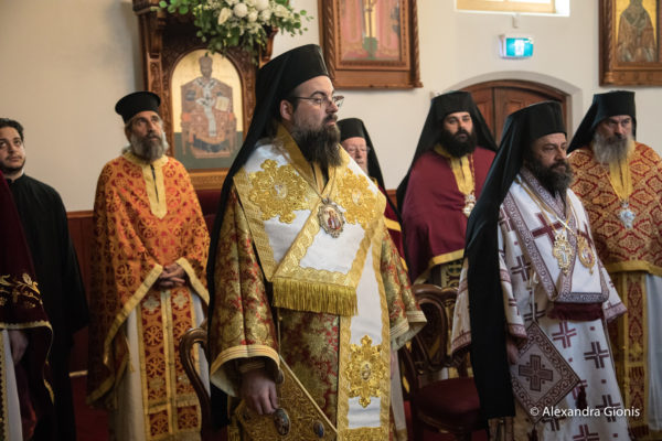 A splendid Poly-Hierarchical Divine Liturgy, presided over by His Eminence Archbishop Makarios of Australia, was celebrated on Sunday, 15 December, at the filled Holy Monastery of Our Lady “Axion Esti”, headquarters of the Holy Diocese of Chora, in Melbourne. Concelebrating with the Archbishop were Their Eminences Metropolitan Myron of New Zealand, and Metropolitan Prodromos of Rethymno and Avlopotamos, as well as Their Graces, Bishop Kyriakos of Melbourne and Bishop Evmenios of Chora, joined also by clergy of the Holy Archdiocese of Australia and by those accompanying the Metropolitan of Rethymno, Archimandrite Vasilios Papadakis, Abbot of the Holy Monastery of Saint Anastasia of Rome in Rethymno, and Archimandrite Theologos Papalevyzakis, Spiritual Councillor of the Holy Patriarchal and Stavropegic Monastery of Arkadi. Among the large congregation were the Consul General of Greece in Melbourne, Mr. Emmanuel Kakavelakis, the President of the Intercommunities Council of Victoria, Mr. Tony Tsourdalakis, and the former Secretary General of Hellenism Abroad and Public Diplomacy of the Ministry of Foreign Affairs of Greece, Mr. Ioannis Chrysoulakis.
