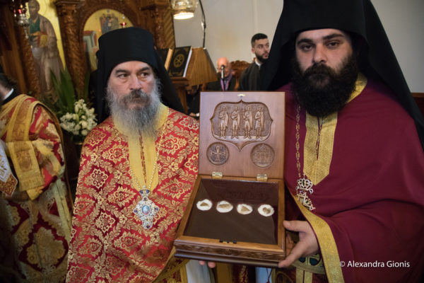 During the Divine Liturgy, in an atmosphere of immense emotion, the handover took place by the Shepherd of the Church of Rethymno, of the reliquary containing the fragments of the holy relics of the Four Holy New Martyrs of Rethymno, Saints Manuel, Angelos, George and Nicholas, which will henceforth be kept in the Holy Monastery of Our Lady “Axion Esti”, for the blessing of its pilgrims and more broadly of the Christ-loving people of Melbourne, Victoria and all of Australia. This is the fulfillment of a fervent holy desire of the Cretans of Melbourne, who had submitted a relevant request for many years and had been waiting with hope, patience and faith.