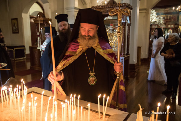In response, Metropolitan Prodromos spoke in praise of the piety and spiritual cultivation of the plenitude of the Holy Archdiocese of Australia, stating characteristically that “the holy relics will remain here forever, to become a source of blessing in a place where the name of God is truly glorified, with people who deserve such a gift and grace”. At another point, he addressed the members of the Cretan Community in particular, emphasising that they make their compatriots proud on the holy island of Greece. Finally, he expressed his gratitude to the Community for the warm hospitality he and his entourage received, and concluded his speech with the prayer “may our Saints protect you and bless you all”.