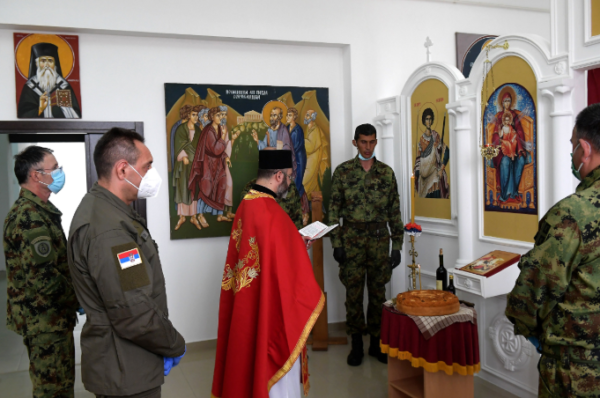 The Holy Glorious and Great-martyr George, patron saint (slava) of the Serbian Armed Forces General Staff, was celebrated on 6th of May in the chapel of the military quarter “Banjica 2” in Belgrade in presence of the Minister of Defense, Mr. Aleksandar Vulin, the commander of the Serbian Armed Forces General Staff, general Milan Mojsilovic, and members of the collegium of Ministers and commanders of the Serbian Armed Forces General Staff.