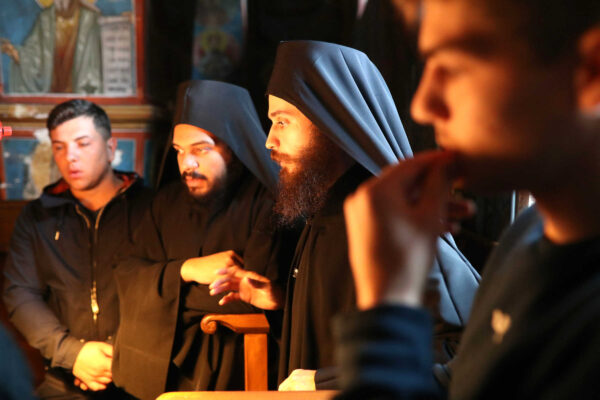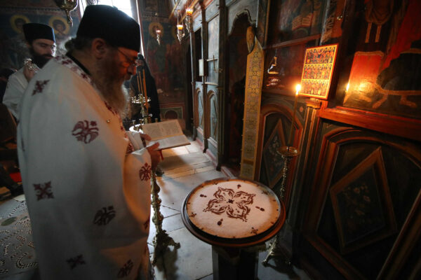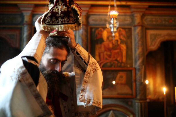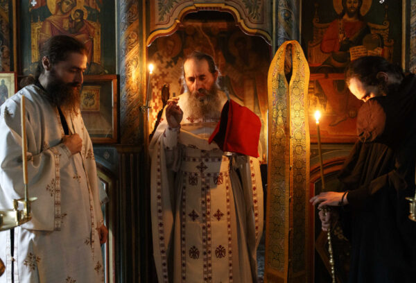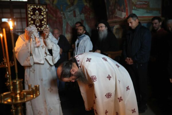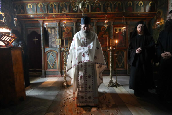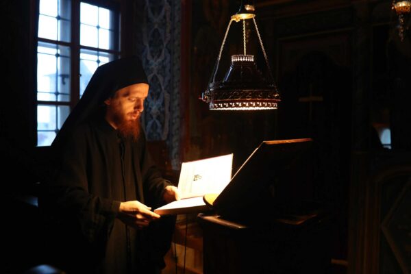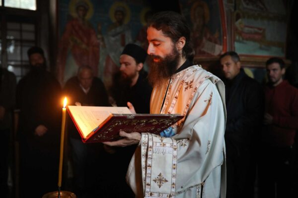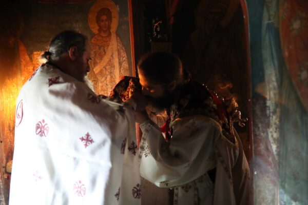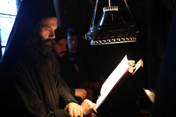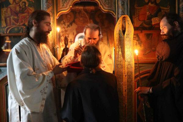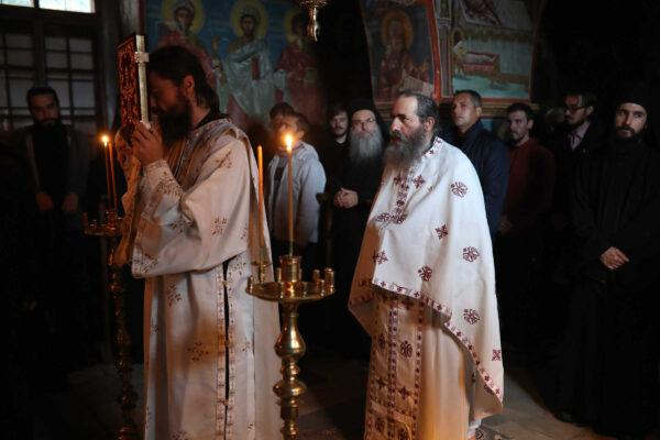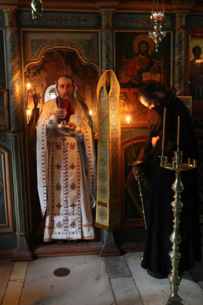 In the photos is depicted a Divine Liturgy held in November 2019 in the Chapel of Holy Unmercenary Healers, Vatopedi monastery, Mount Athos.