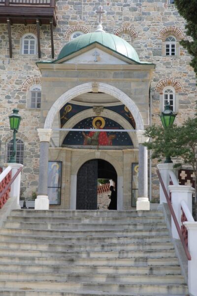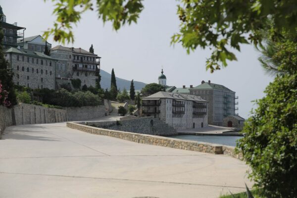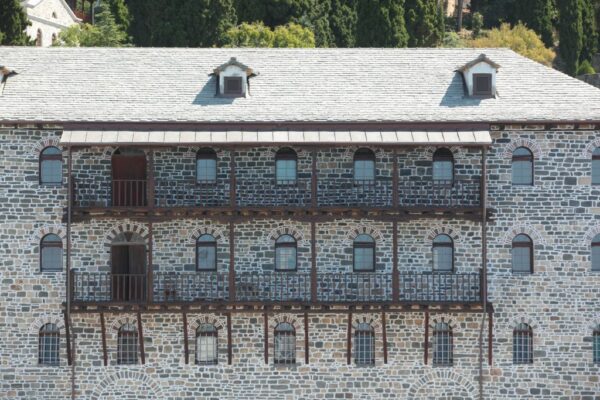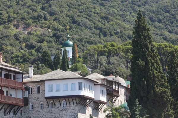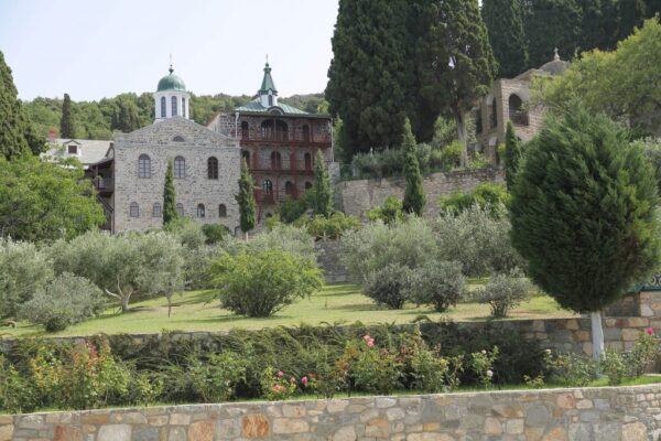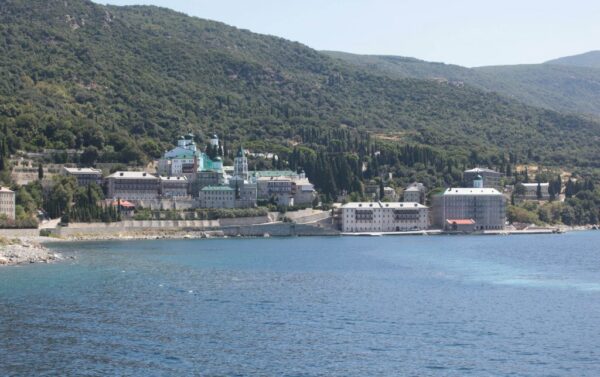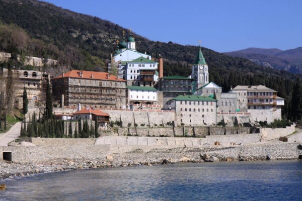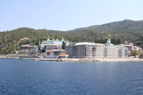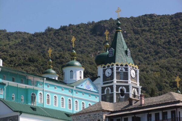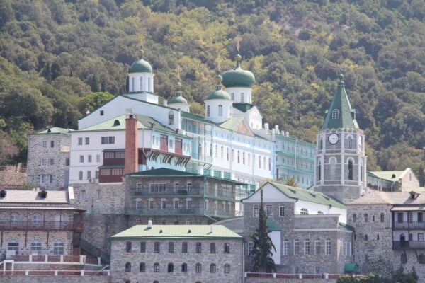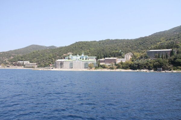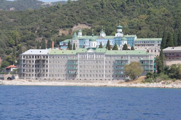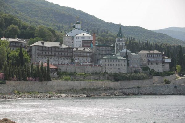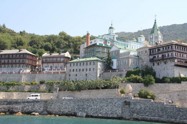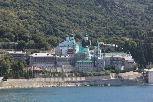 The monastery is on southwestern side of the peninsula. St. Panteleimon’s has been inhabited for the past one-hundred-plus years by monks of Russian origin and is referred to often as the Russian monastery (Ρωσσικόν, Rossikon). The monastery is ranked nineteenth in the hierarchical order among the twenty monasteries on Mount Athos. The monks live in a cenobitic life. The monastery feast day is that of St. Panteleimon, July 27.
