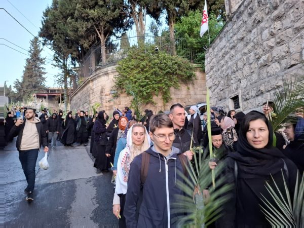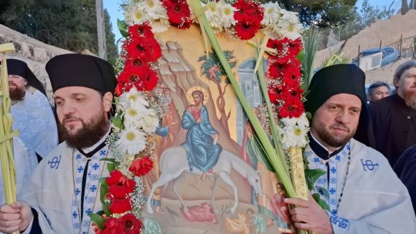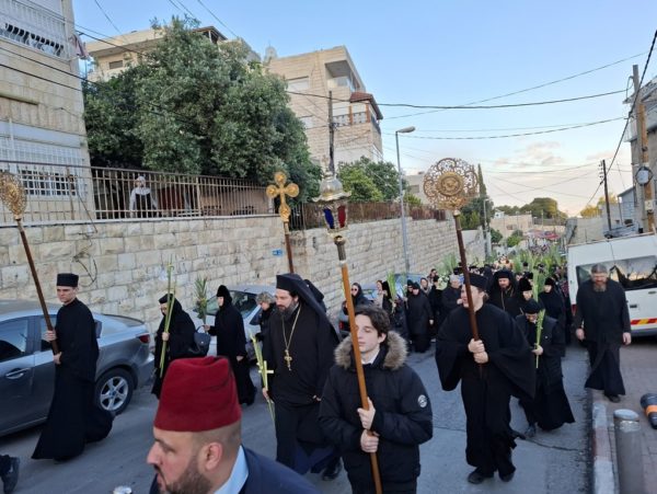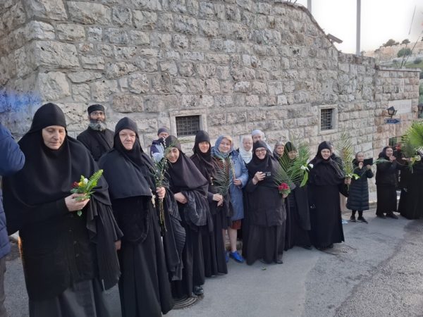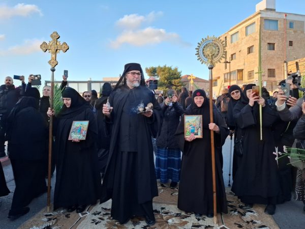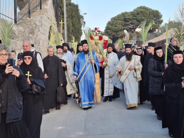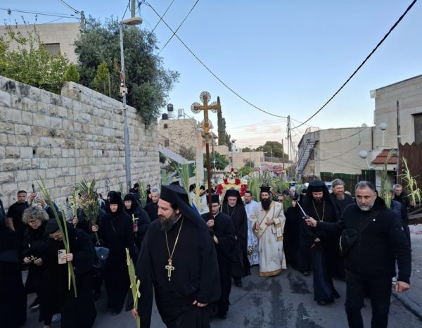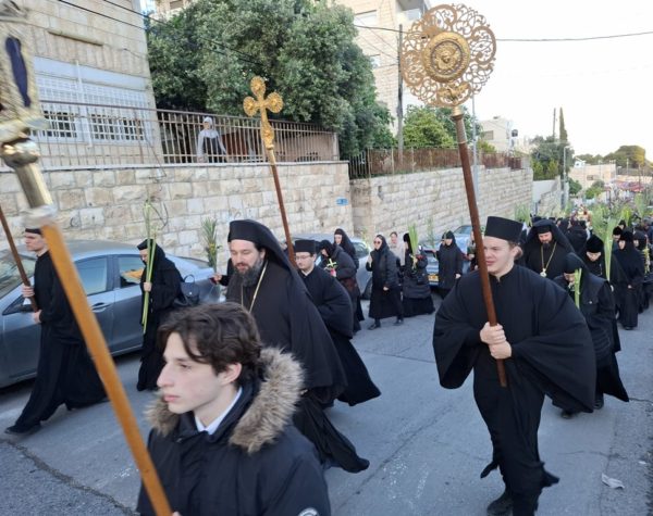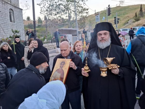 Following the blessing, in accordance with pilgrimage tradition, the Palm Sunday procession was held, beginning at the aforementioned Holy Monastery and led by His Eminence Archbishop Aristovoulos of Madaba. The procession passed through Bethphage, continued through the Valley of Gethsemane, and concluded at the Holy Monastery of Saint Anne, entering the Old City through Saint Stephen’s Gate—also known as the Lions’ Gate—in commemoration of the Lord’s triumphant entry into Jerusalem, riding on the foal of a donkey.