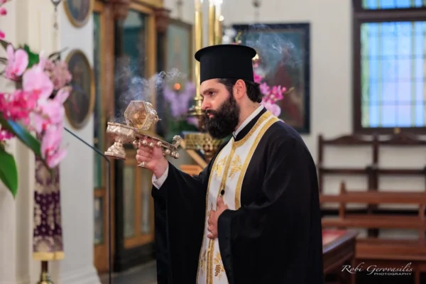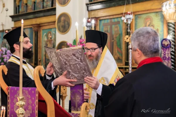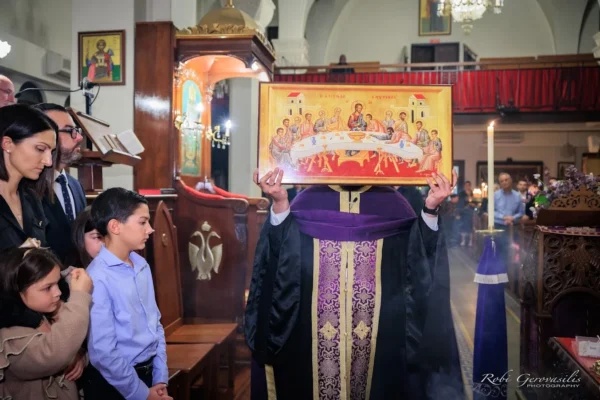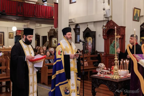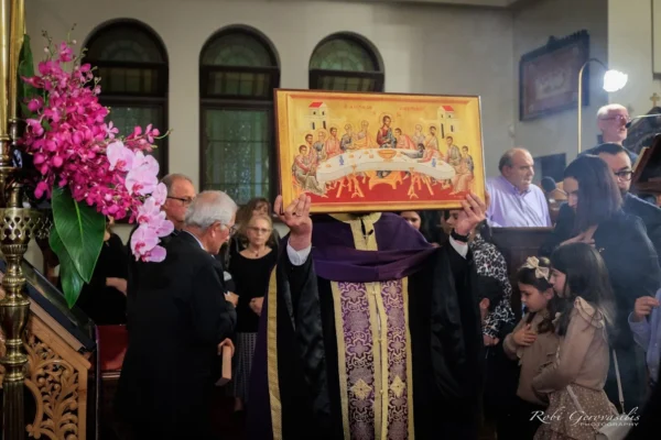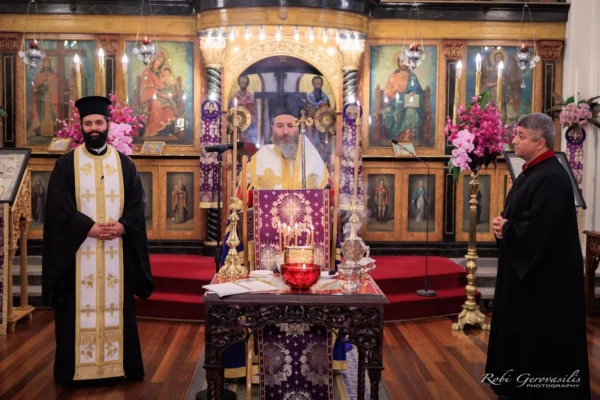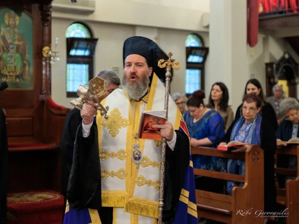On Holy Wednesday evening, His Grace Bishop Elpidios of Kyanea presided at the Service of the Sacrament of the Holy Unction at the Church of Sts Constantine and Helene in Northbridge.