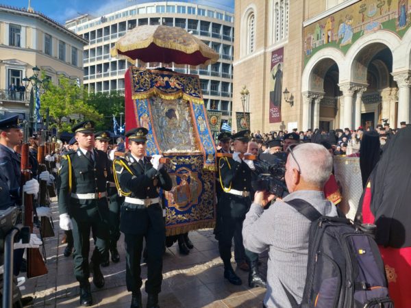 The reception of the icon was attended by all the Hierarchical Commissioners and Secretaries of the Archdiocesan Districts. Afterwards, a Doxology and Holy Supplication Service was held at the Cathedral of Athens, while, according to the program, every morning Matins and the Divine Liturgy and every afternoon Supplication Paraklesis Service will be held. In addition, on Sunday, May 7, Wednesday, May 10 – the day of Mid-Pentecost – and Sunday, May 14, a Hierarchical Divine Liturgy will be held.