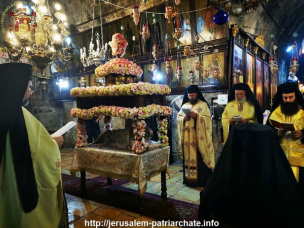 This ceremony in honour of Theotokos is a part of the Status Quo of the Church of Jerusalem.