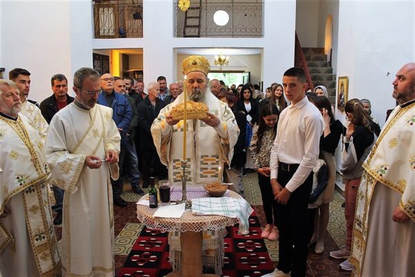 In the new church dedicated to the Holy Deacon Habakkuk, the Bishop was concelebrated by protopresbyter-staurophor Vidoje Lukić, Bishop’s dean in Zvornik, protopresbyter-staurophor Slavenko Tomić, parish priest in Zvornik, presbyter Mladen Pantić, parish priest in Medjaš-Trnjača, and protodeacon Slavoljub Milosevic.