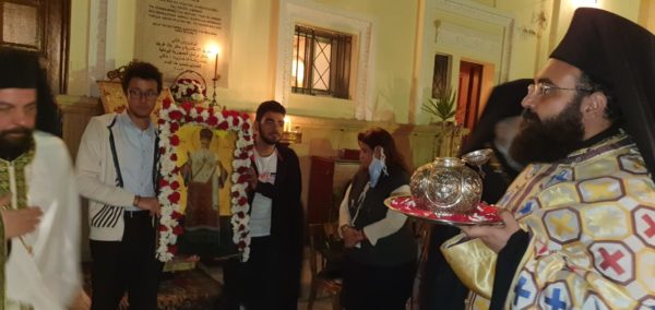 The festal Vespers were held in the courtyard of the Church complex, due to COVID-19 restrictive measures, with the Patriarchal Vicar of Cairo, Metropolitan Nikodimos of Memphis, officiating at the service.