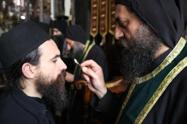 Then the old monk responded „Do the mystery of the Holy Unction. The old monks gathered have a lot of things inside them during their life. Your human power isn’t enough. If you do the mystery of the Holy Unction then the Holy Spirit, the comforter, will come and comfort everyone: some will heal and some will die, according to God’s will. Nobody will be tormented anymore”.