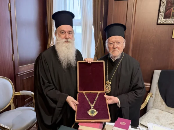 As a sign of paternal affection and spiritual encouragement, the Patriarch presented Metropolitan Pavlos with an episcopal engolpion bearing the image of the Holy Apostle Paul, who founded the Church of Corinth and addressed it in his epistles. The Ecumenical Patriarch also extended his heartfelt wishes for a long, fruitful, and blessed pastoral ministry, invoking God’s grace upon the new hierarch as he begins his service to the clergy and faithful of the Metropolis.