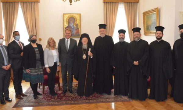 The ambassador Mr. Flake, accompanied by his wife Cheryl Flake, the US Consul General in the town of Daria Darnell, as well as the Counselors Adam Parker and Kevin Moss, was warmly welcomed by the Ecumenical Patriarch Bartholomew, with whom they had a lengthy discussion for matters of mutual interest.