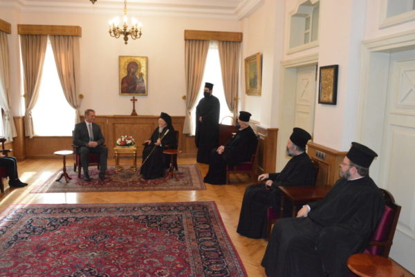 The ambassador Mr. Flake, accompanied by his wife Cheryl Flake, the US Consul General in the town of Daria Darnell, as well as the Counselors Adam Parker and Kevin Moss, was warmly welcomed by the Ecumenical Patriarch Bartholomew, with whom they had a lengthy discussion for matters of mutual interest.