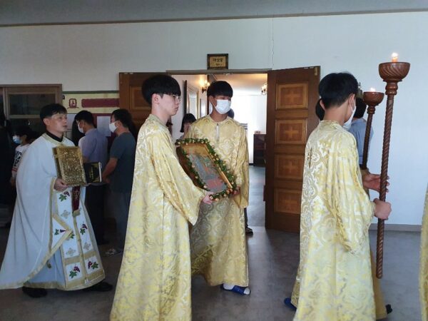 The faithful of the Parish of the Dormition of the Theotokos in Jeonju, with the participation of the Metropolitan of Korea Fr. Ambrosios, assisted by Presbyter Fr. Hillarion Jeong, and Deacon Yohan Park celebrated the feast of the Dormition of the Theotokos, according to the ecclesiastical order.