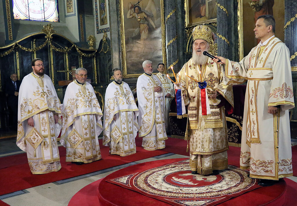 His Holiness Irinej, the Serbian Patriarch, celebrated the Holy Hierarchal Liturgy in the Cathedral church of the Holy Archangel Micahel in Belgrade on the Feast day of the Entry of the Lord Jesus Christ into Jerusalem, 21 April 2019.
