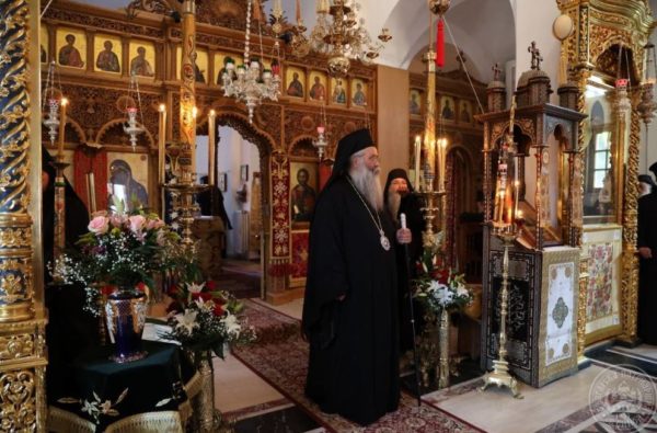 At the monastery, the Primate of the Patriarchate of Bulgaria and his delegation were welcomed with a festive bell-ringing ceremony by His Eminence Metropolitan George of Kitros, Katerini, and Platamon, the Abbot of the Monastery, Archimandrite Maximos, the brotherhood, and pilgrims.