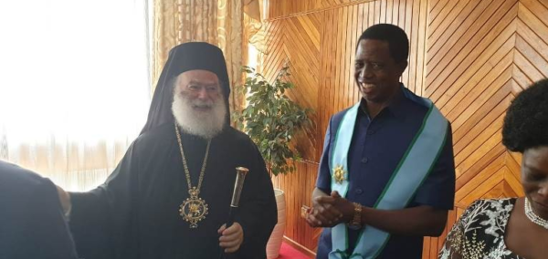 The Alexandrian Primate decorated His Excellency the President of Zambia with the Grand Cross of the Throne of the Evangelistl Mark (1st Order), which is awarded by the Patriarchate of Alexandria only to Heads of State.