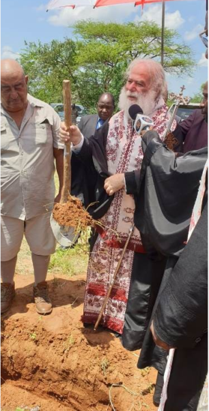His Beatitude was welcomed with the honour of a religious leader, by the local authorities and he was welcomed by the Regional Commissioner and the Head of the Tribes of the area. A Sanctification service was then sung and the foundation stone laid of the New Missionary Centre of the Holy Metropolis of Zambia, which will include a school, a medical centre, Church and an agricultural education and training workshop.