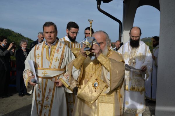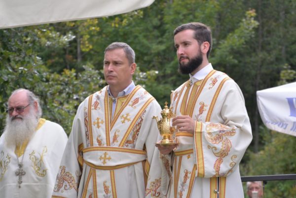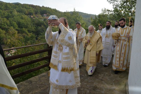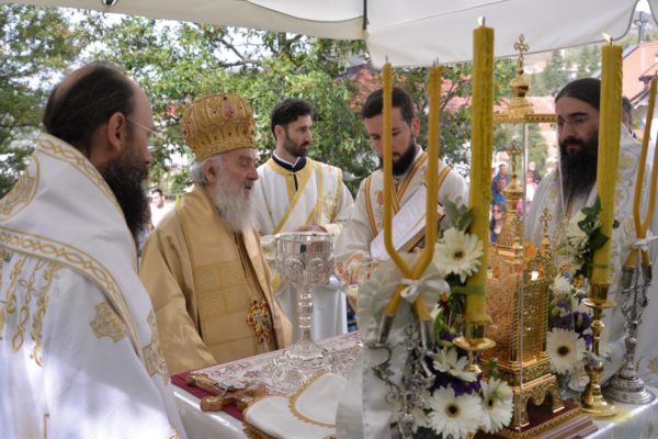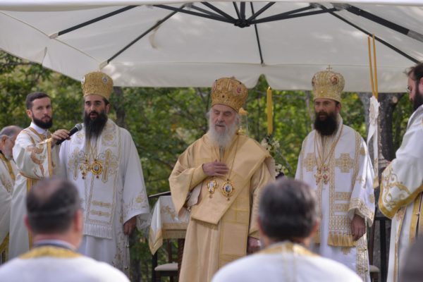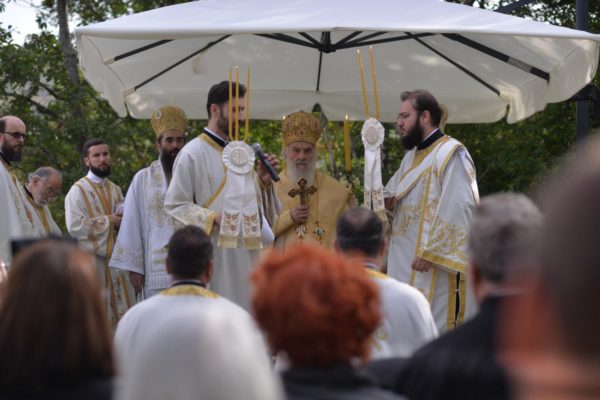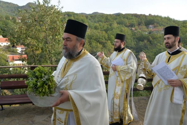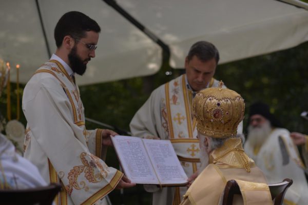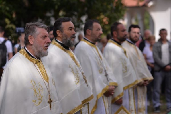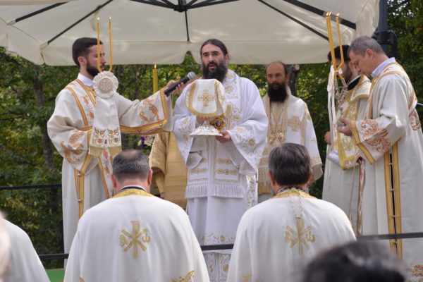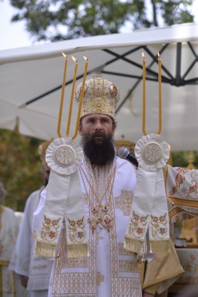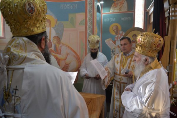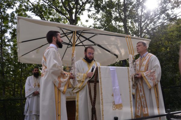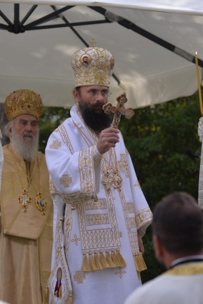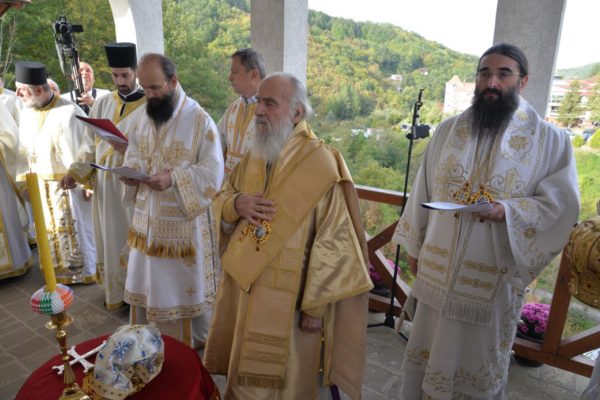 The Holy Hierarchal Liturgy itself was celebrated in the courtyard of the church by His Holiness Serbian Patriarch Irinej with the concelebration of Bishop Ilarion of Timok; Bishop of Arsenije of Nis; archimandrite Raphael (Golushina), abbot of the monastery of Visocka Rzana; archimandrite Seraphim (Misic), abbot of the Sukovo monastery; Archimandrite Damaskin, abbot of the monastery of St. Roman in Djunis; protopresbyter staurophor Milutin Timotijevic, principal of the Theological Seminary of Saints Cyril and Methodius in Nis; protopresbyter staurophors Branislav Cincarevic and Slobodan Petrovic; archpriests Dusko Kaplarevic and Dejan Arsic as well as by archdeacon Stevan Kricka and deacon George Filipovic.