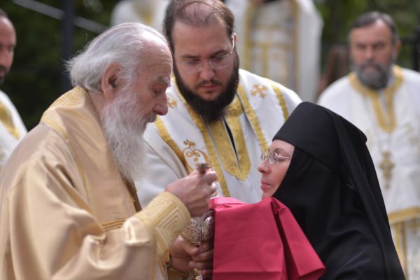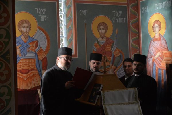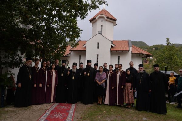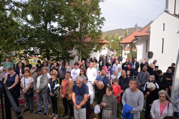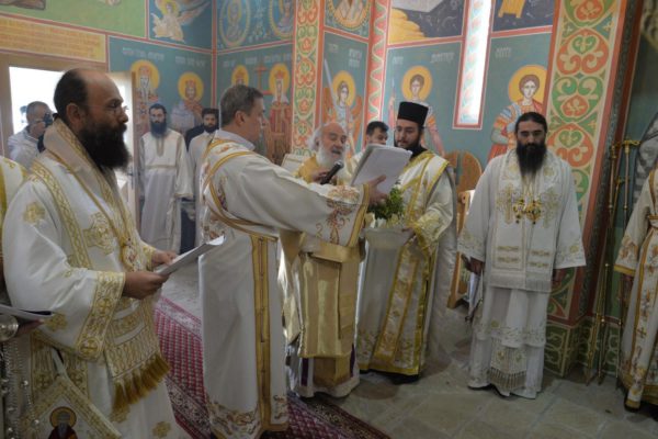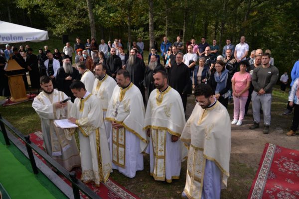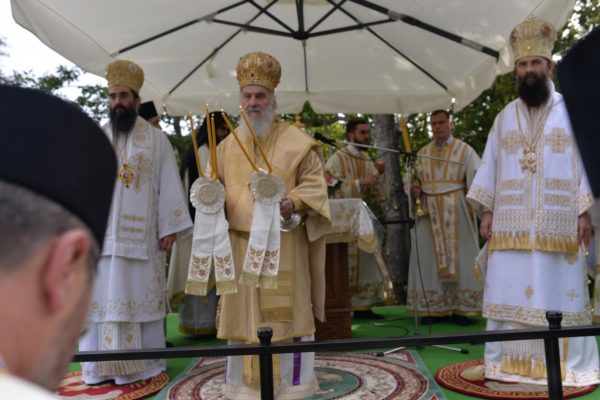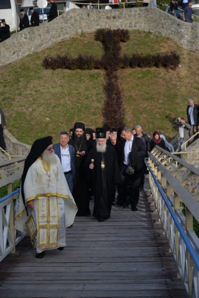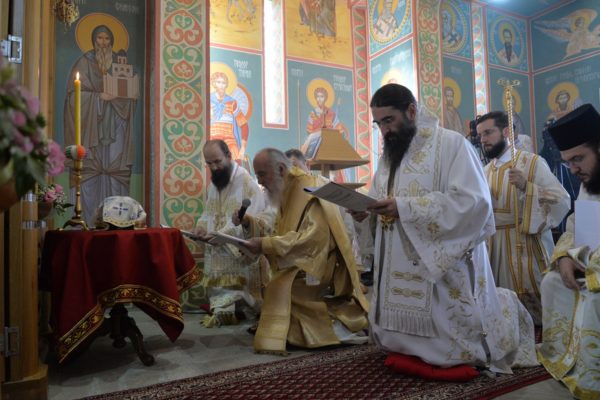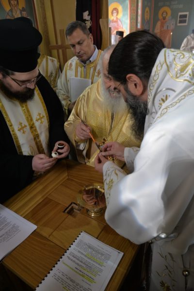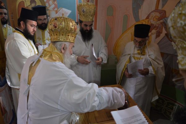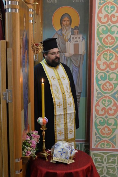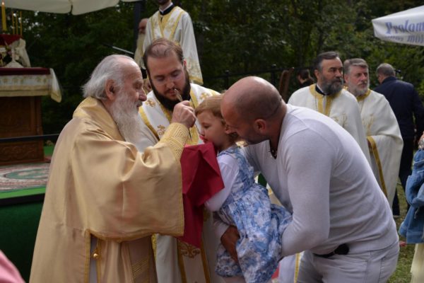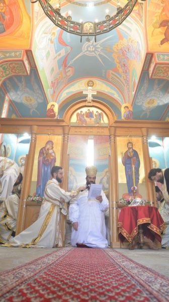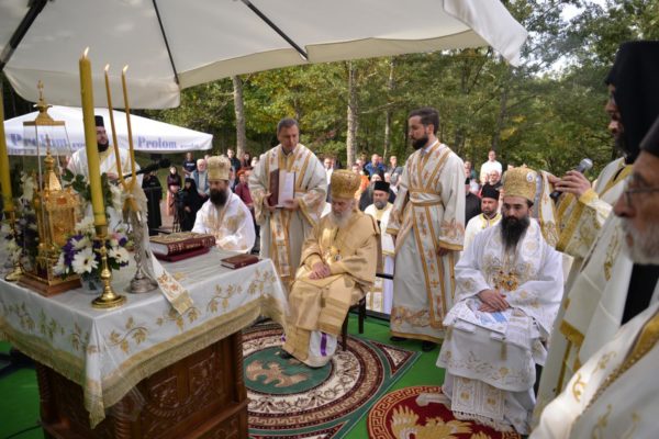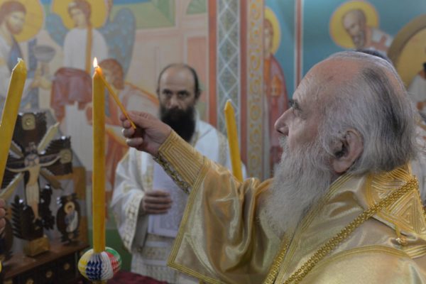 The Holy Hierarchal Liturgy itself was celebrated in the courtyard of the church by His Holiness Serbian Patriarch Irinej with the concelebration of Bishop Ilarion of Timok; Bishop of Arsenije of Nis; archimandrite Raphael (Golushina), abbot of the monastery of Visocka Rzana; archimandrite Seraphim (Misic), abbot of the Sukovo monastery; Archimandrite Damaskin, abbot of the monastery of St. Roman in Djunis; protopresbyter staurophor Milutin Timotijevic, principal of the Theological Seminary of Saints Cyril and Methodius in Nis; protopresbyter staurophors Branislav Cincarevic and Slobodan Petrovic; archpriests Dusko Kaplarevic and Dejan Arsic as well as by archdeacon Stevan Kricka and deacon George Filipovic.