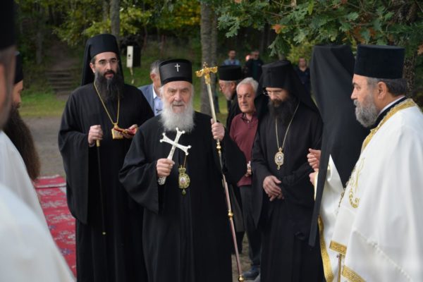 His Holiness the Patriarch was greeted by a number of monks, priests and faithful people, headed by His Grace Bishop Arsenije of Nis, on Sunday, October 4, 2020.
