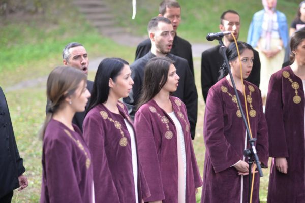 The Liturgy was especially enhanced by chanting in the church apse of archpriest Vladica Savic and professor of Church chanting at the Theological Seminary of Saints Cyril and Methodius in Nis archpriest Dejan Krstic as well as Priest Stefan Cincarevic, whereas liturgical responses were chanted by the Great Choir of the Nis Cathedral “Branko”, conducted by Mrs. Sara Cincarevic.