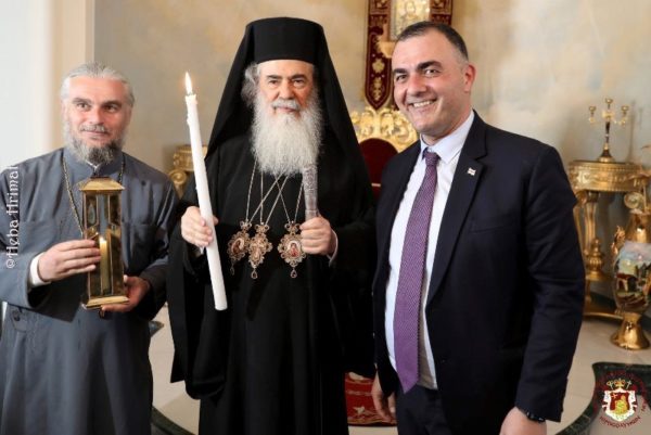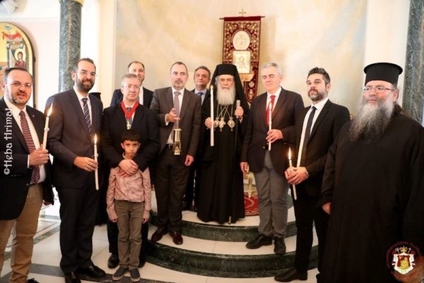 At the Patriarchate, His Beatitude gave the Holy Light to the leader of the Greek Delegation, Vice Minister of Foreign Affairs Mr Andreas Kastaniotiis and to the Exarch in Athens Archimandrite Raphael to transfer it to Greece by a private flight for the blessing of the Greek people.