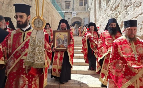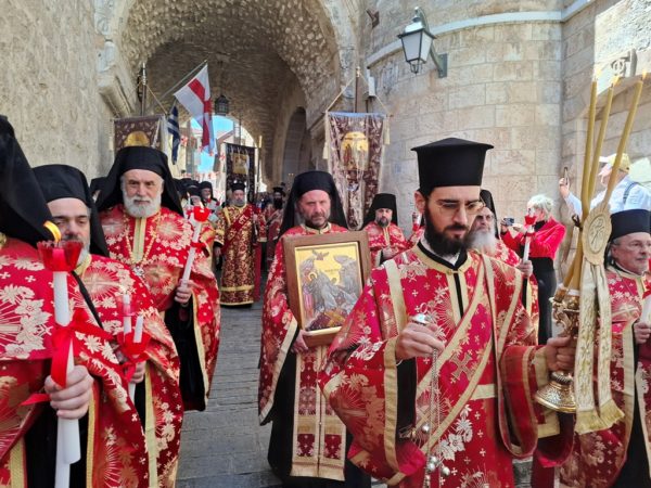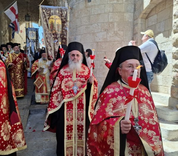 This was followed by a formal procession, in full episcopal and clerical vestments and accompanied by chanting, along the Christian Road to the Church of the Resurrection, welcomed by the faithful gathered on both sides of the road.
