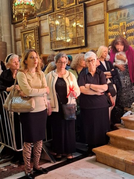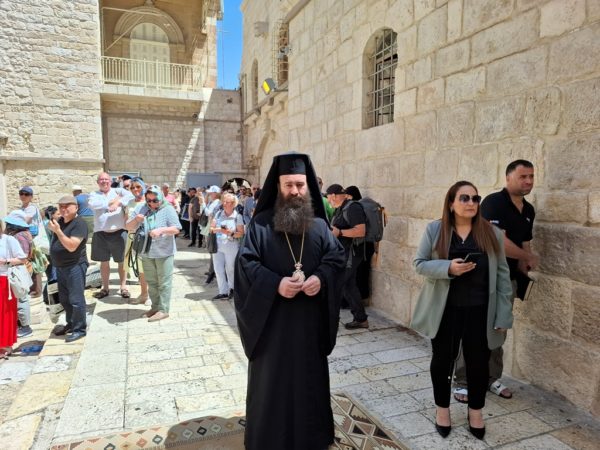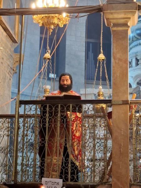 At the courtyard of the Church of the Resurrection, the Hegumen of the Orthodox monks of the Church of the Holy Sepulchre and Elder Sacristan, His Eminence Archbishop Isidoros of Hierapolis, awaited them, where a supplicatory prayer was offered.