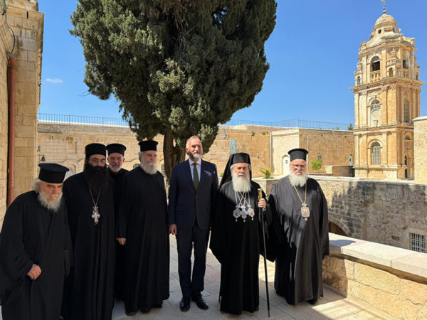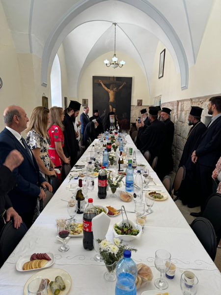 After the Divine Liturgy, the Hegoumen Archimandrite Christodoulos, who after zeal and dedication takes care of the matters of the Holy Church and the Monastery, hosted a meal for His Beatitude and His entourage and some members of the congregation, among whom, the Consul General, and the conservator of icons and books Mr Stavros Andreou, who prepares the space to host the Institute of Biblical and Theological Studies of the Patriarchate.