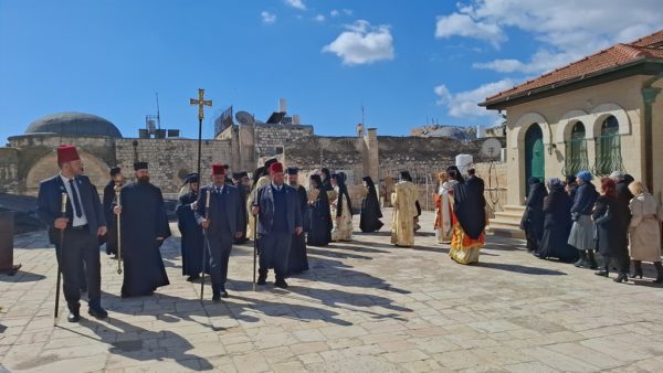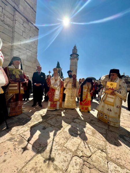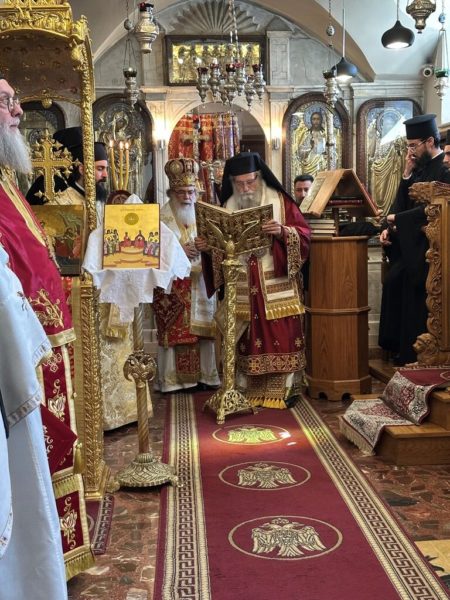 Due to the outbreak of war between the United States of America and Iran, and because of the bombardments by Iran within the territory of Israel, and particularly in the Holy City of Jerusalem, the Vespers of this Sunday of Orthodoxy was not celebrated in the usual order in the Church of the Holy Sepulchre, as it has been closed for security purposes, but rather in the Patriarchal and Monastic Church of Saints Constantine and Helen. His Beatitude our Father and Patriarch of Jerusalem, Theophilos III, presided, concelebrating with the Holy Sepuchre Fathers serving the Church, and with the Hierarchs participating in prayer.