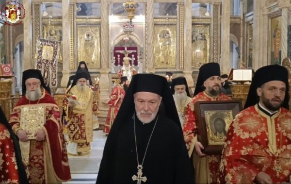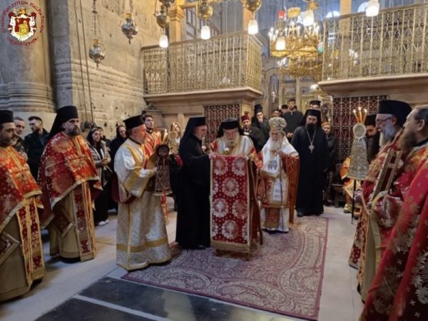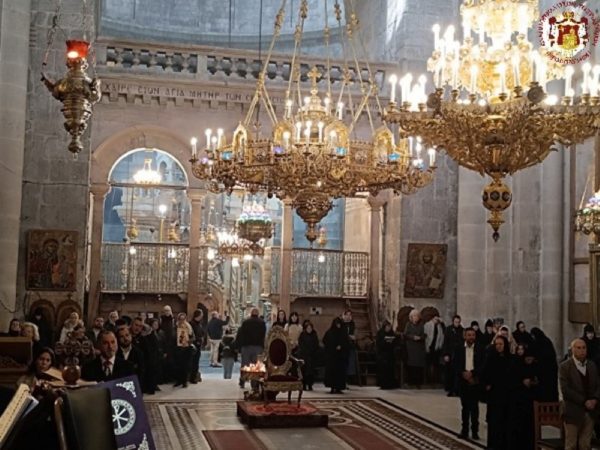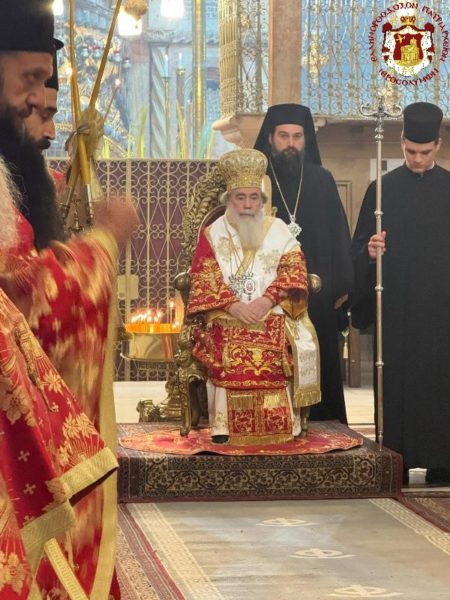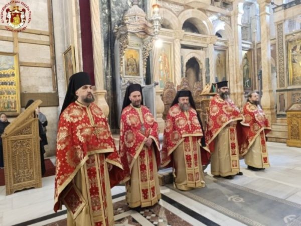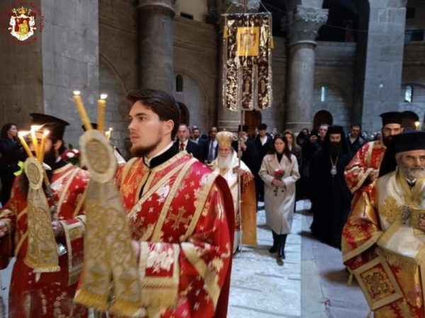 This event of the restoration of the icons, which we solemnly celebrated today in the Church of the Holy Sepulchre, was recognized as a triumph of Orthodoxy over false doctrines. Therefore, let us also hear the hymnographer singing and saying: “Celebrate with a feast the Christ-named people of the Lord, seeing the Church shining again the beauty of the divine form, as God was clothed in it, as a man to save us”.