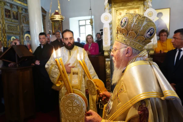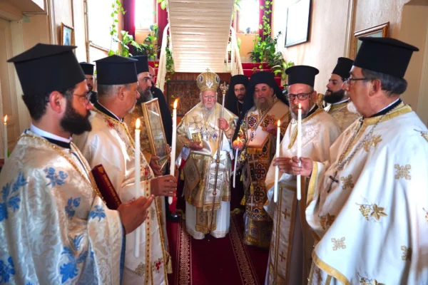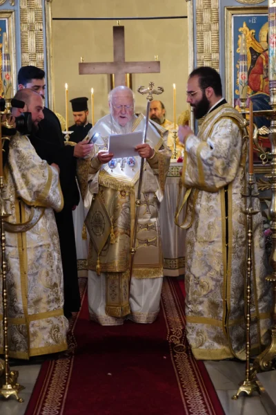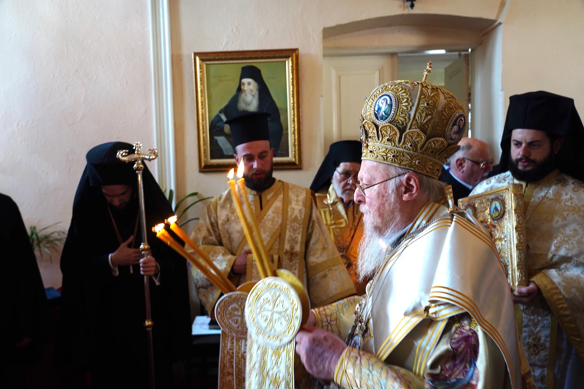 His All-Holiness Ecumenical Patriarch Bartholomew, after dressing in the Hierarchical vestments, in the Episcopate, joined by Their Eminences, Metropolitan Kyrillos of Imbros and Tenedos, Metropolitan Kyrillos of Moschonisia and Metropolitan Chrysostomos of Myra, as well as by clergy of the Patriarchal Court and the Holy Metropolis of Imbros and Tenedos, he arrived, in procession, at the adjacent Metropolitan Church, and presided over Vespers.